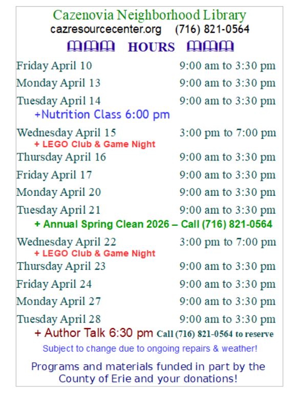 Cazenovia Neighborhood Library  A 501 (C) 3 –  Non For Profit