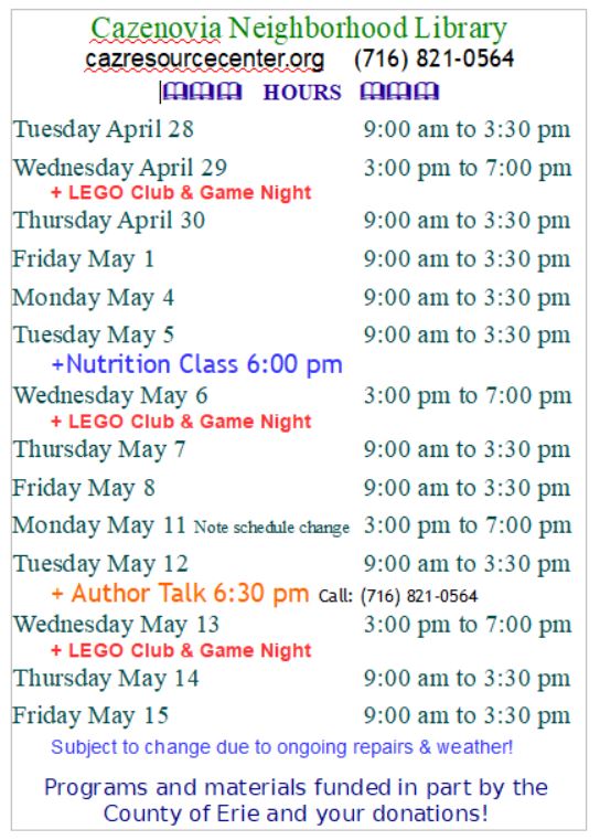 Programs and materials funded in part by the County of Erie & your donations!