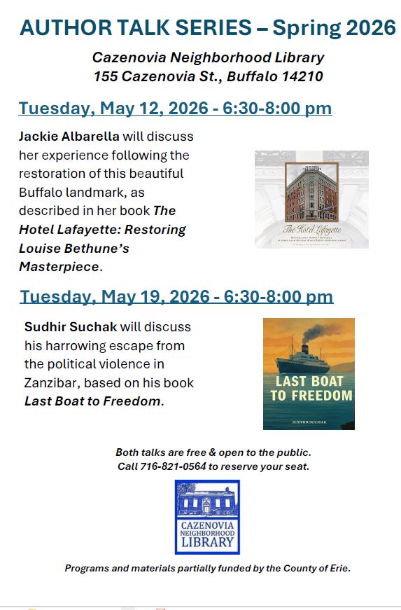 Author Talks! Call (716) 821-0564